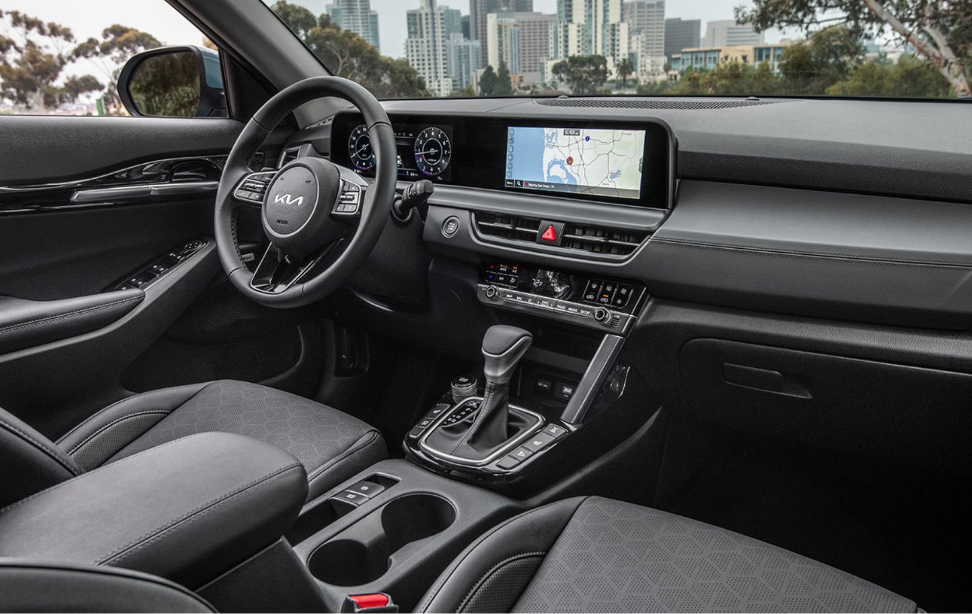 For 2026, the Kia Seltos interior has received several upgrades that elevate its design and functionality. The cabin features premium materials and an intuitive layout. One of the most exciting updates is the introduction of the available Dual Panoramic Display, which adds a modern touch with a 10.25-inch touchscreen that combines both the infotainment and navigation functions seamlessly. Whether you're looking for an entertainment experience or need quick access to driving info, this tech upgrade delivers it all in a sleek, user-friendly design.