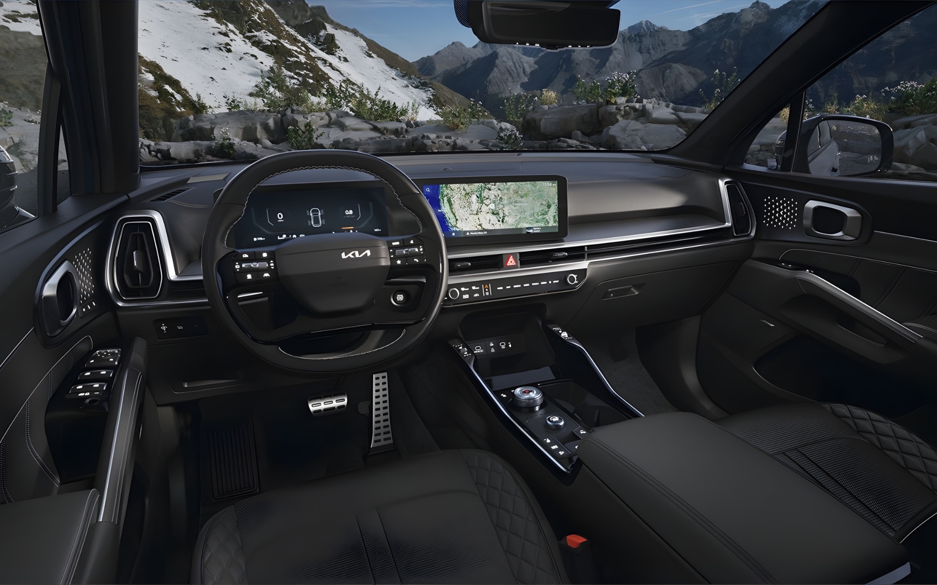 Step inside and you’ll instantly feel at home. The Sorento PHEV’s interior offers a perfect mix of luxury and practicality, featuring high-quality materials, soft-touch finishes, and a spacious six-passenger layout. The available dual 12.3-inch panoramic displays put everything you need right where you want it, from driving data to infotainment and climate controls. Add in the available panoramic sunroof, ventilated front seats, and heated second-row captain’s chairs, and every passenger gets to enjoy premium comfort on every journey.